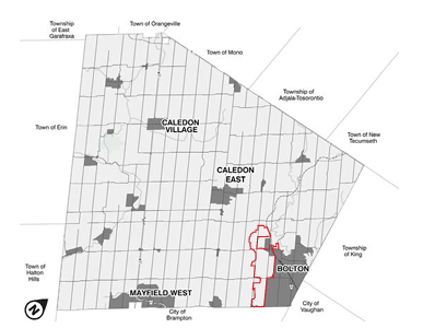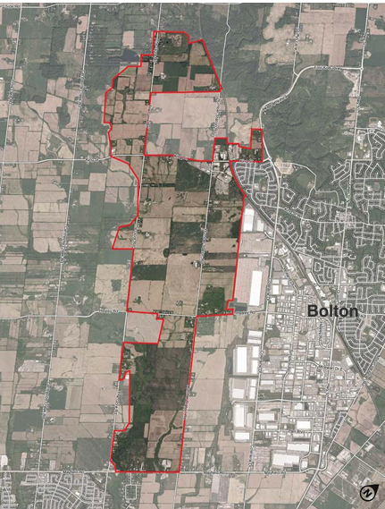 The Bolton West Secondary Plan area is identified on the map below and is expected to be completed by early 2027.