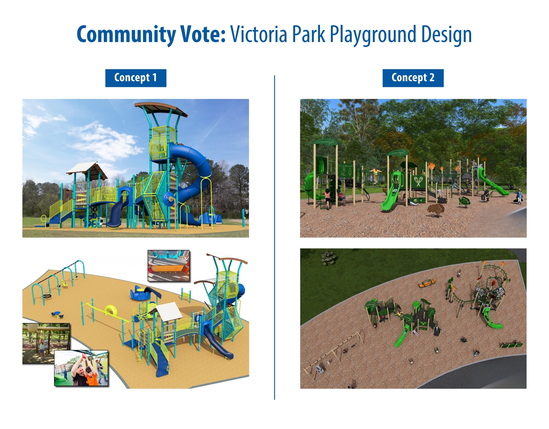 Thank you for your continued feedback on improvements to Victoria Park. We’re excited to share the latest Concept Plan, which includes double pickleball courts, a playground, shade structure, pathways, seating, and surrounding landscaping. As part of this process, we’re inviting the community to vote on their preferred playground design.